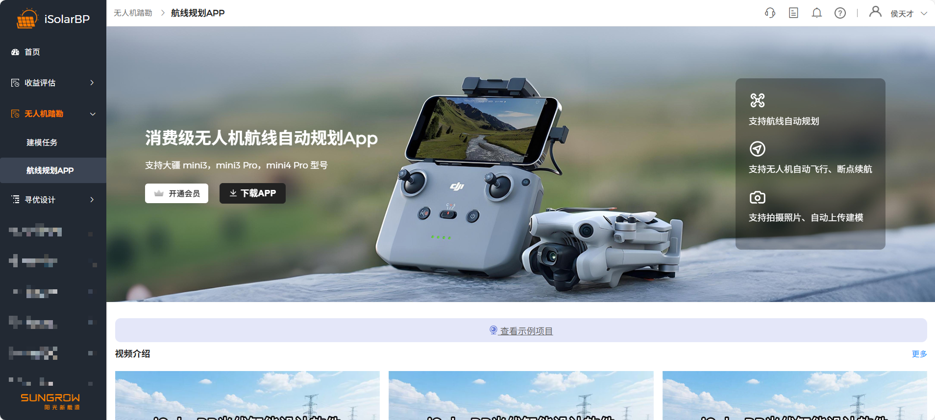 会员赠送航线自动规划APP,支持消费级无人机自动飞行、断点续航、自动上传建模。